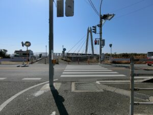- オマケで目の前の横断歩道を渡り海へ