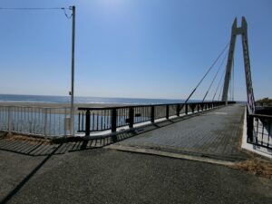 - 目の前は白渚海岸のシンボル「和田サーフ橋」