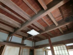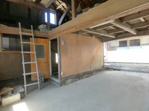 今回ご紹介する物件は、海岸道路を挟んだ目の前は南房総指折りのサーフポイントといった極々レアな場所にある売地となります。現況は、画像や詳細を確認いただいた通り、南北に長い敷地の北側に築100年は経っているのではないかと想像させられる渋めの古民家が付いている物件。そこから小道を挟んだ南側(海側)には、直近までサーファー用の駐車場として日貸していた約75坪ほどの土地となり、古民家が建つ敷地と合わせると合計166坪ある広い敷地。また、今回の売買は現況での引渡しという条件のため古民家をどうするかが大きなテーマであろう。古民家なんて全く興味がないという方であれば、もちろん解体して新たな建物を。古民家好きであれば全面改修して再生するという選択肢もアリだろう。建物の躯体は、古民家ならではの逞しい柱や梁が使われていて迫力満点、ファンは堪らないはずです。