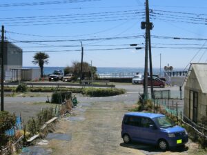 各地からサーファーが集う白渚ポイント前の立地