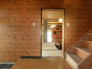 今回ご紹介する物件は、生活するうえでも大変便利な岩井地区の中心に立地する別荘となります。歩いて1~2分の場所には地元スーパーやコンビニのほか、ドラッグストア、ホームセンターなどが揃っており暮らしに困ることはありません。それに加え、岩井海岸まで500mと海への散歩にも適当なポジション。そんな理想的な立地にもかかわらず住宅の密集地といった煩わしい環境ではなく、程ほどの距離感に民家がポツリポツリ……といったちょうど良い長閑な田舎の住環境です。また、南側に広がる山々のロケーションも素晴らしく、岩肌が露出した山の景観は迫力もあり、物件から見る眺望のアクセントとなることでしょう。