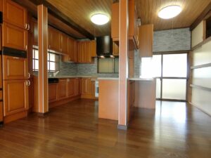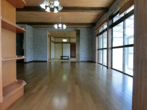 約292坪の広い敷地に佇む建物は、見るからにお金を掛けたと想像させられる重厚堅牢で和洋折衷感のある洒落た建物。現所有者さまからは、お医者さまだったご両親から相続した別荘なんですとお聞きし、「なるほど…」と納得。延床約47坪の広い室内に入ると、ゆったりと贅沢な間取りと随所にこだわった設計も素晴らしい。まさに寛ぎの別荘といった感じである。広い庭にはプール(使用の可否は不明)も造作してあり、かつては家族で楽しんだんだろうなと過去のシーンも伝わってくる。また、長い間利用してなかったため、庭を含め全体的に手を入れなくてはならない箇所も正直あるが、一度きれいにしてしまえば、それなりの別荘として復活してくれることだろう。