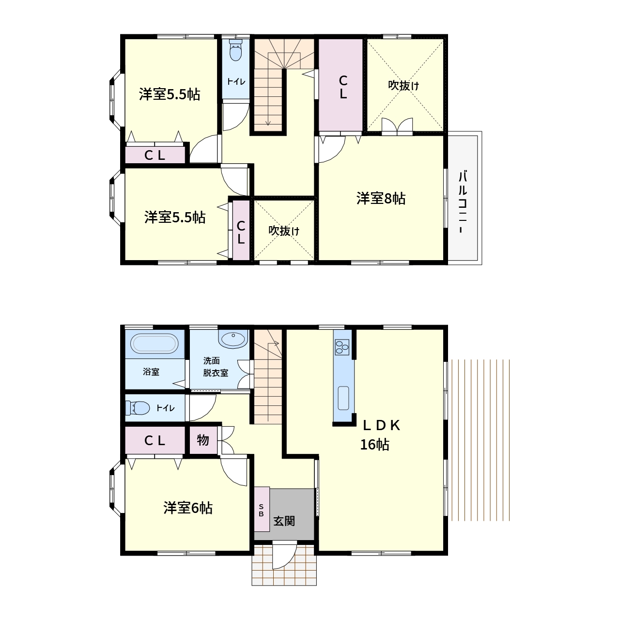 - 北側東西のお部屋はともに5.5帖の広さとなります