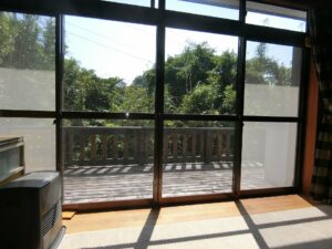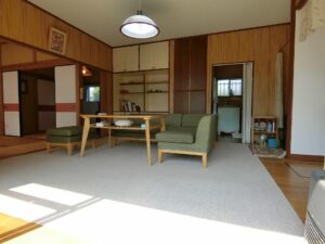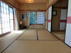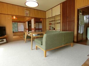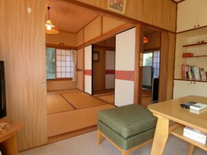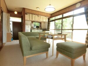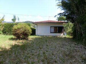 今回ご紹介する物件は、塩見の海岸線からフラワーラインを渡り、山側へ少し入った地域に建つ平家の別荘となります。環境としては緑に囲まれた閑静な場所でありながら、海まで歩いて7分という恵まれた立地となり、海と山の魅力が贅沢に同居しているうってつけの条件。日々の暮らしに静けさを求めつつも、気軽に海辺へ足を運べるバランスの取れた住環境が整っています。近隣は古くからここで暮らす世帯に加え、この環境に惹かれ都会から移住してきた方々の住まいや週末の別荘が多いことも納得。それぞれが憧れを抱いた館山のスローライフを楽しんでいるようである。