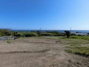 今回ご紹介する物件は、果てしなく広がる太平洋をパノラマで一望できる、実測987坪の真南向き雛壇地。圧倒的なスケール感を誇る希少なロケーションです。しかもこの土地、ただ広いというだけではなく、隣接に民家がないというプライベート感を兼ね備えている点も大きなセールスポイント。そのため、誰にも遠慮することなく自分らしいライフスタイルを叶えてくれることは間違いありません。気兼ねなく音楽を楽しんだり、仲間とのBBQ、ほかにも音が気になる木工といった趣味の拠点としても存分に活用できそうであります。もちろん、海が一番よく見える絶景の場所に家を構えてしまえば、静かな環境の中で海を感じながら暮らす……そんな夢のようなリゾートライフも十分に具現化します。