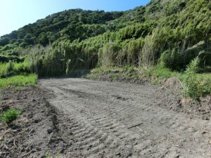 - 敷地内は車でのアクセスもできる緩い地勢の雛壇地