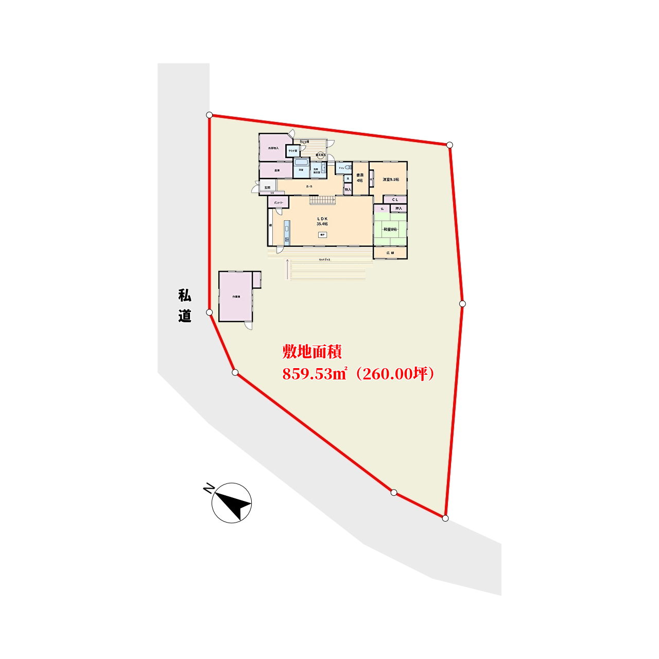 ◇ 私道持分 388.78㎡(持分69分の26)、5.93㎡(持分69分の26)