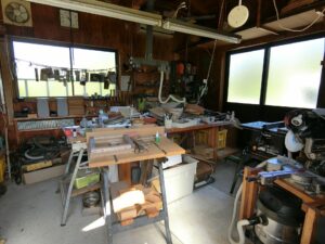 この物件に関しては、オーナーさまが愛してやまない敷地の隅の工房棟をはじめ、露天風呂にお湯を供給する自作の太陽光温水システム、蓄電池ルームや薪ストーブによる床下温風口など、随所に“エコな暮らしを楽しむ”ための知恵と工夫が散りばめてある。そんな田舎暮らしを日々送るうちに、必然的に田舎生活の必需品でもある、草刈り機やチェンソー、芝刈り機、薪割機など、様々な工具類も揃っていくもの。それらの機材や道具類もすべてお付けしてお譲りしたいというのがオーナーさまからのご希望です。