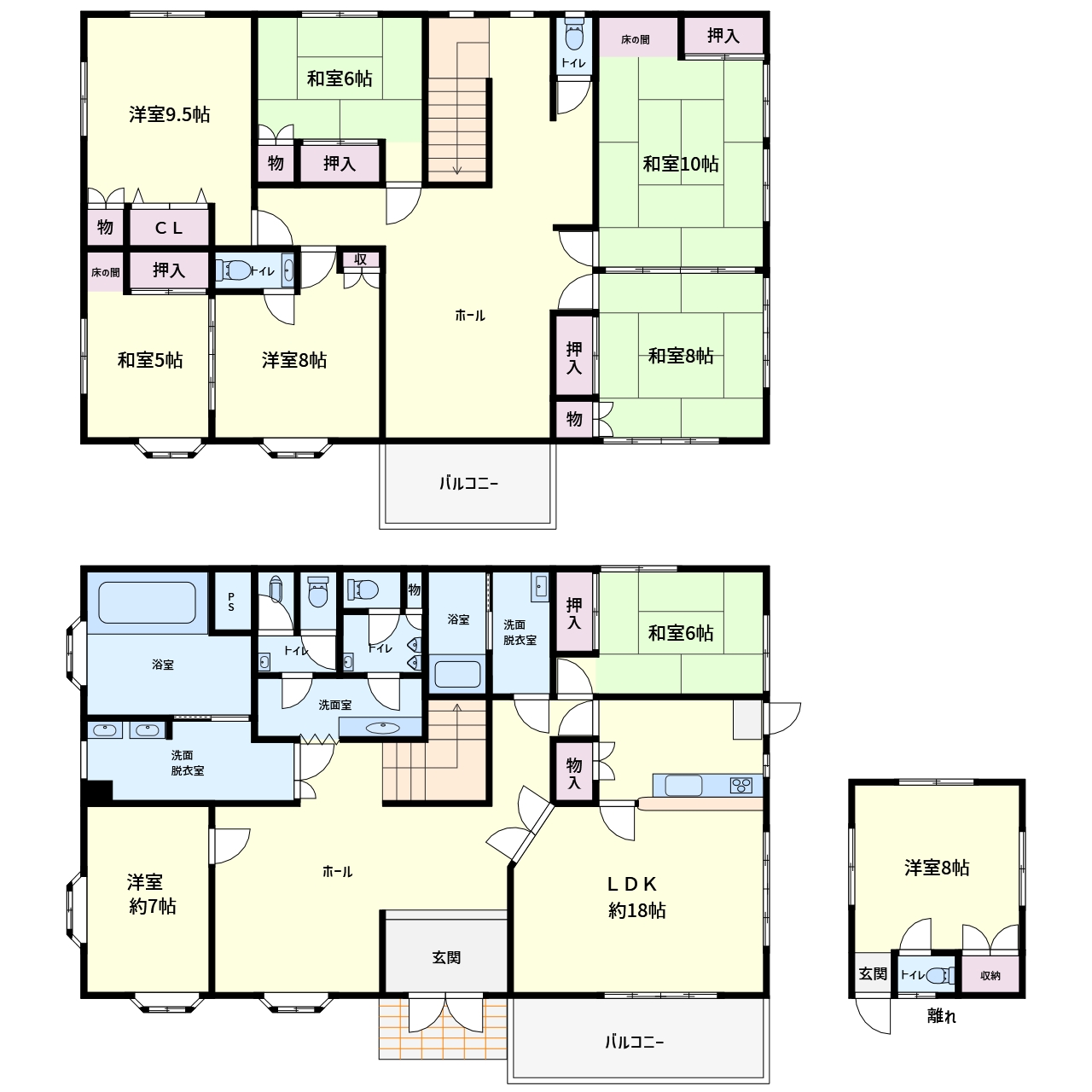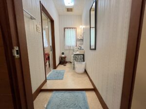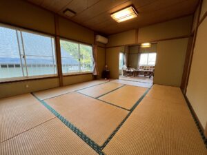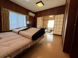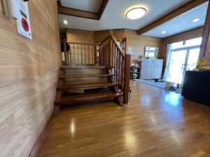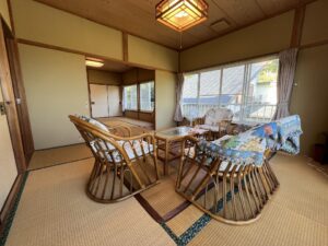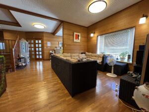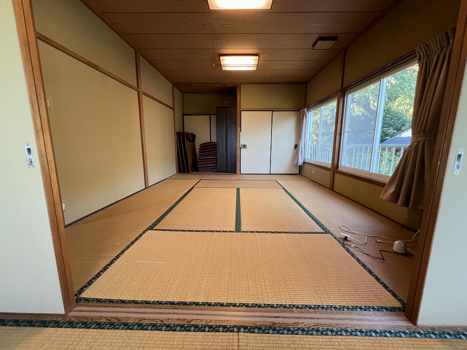 この物件の最大の特徴となるのは、延床面積78坪を誇る大きな大きな建物。間取り8SLDKに加え、離れ(1R)までを備え、多目的な用途として利用可能。主建物の居室を見て回っていると、現在地が分からなくなってしまうほどの部屋数とスケール感。さらに驚かされるのは、浴室が大小二箇所に設けられていて、大きい方は7帖もの広さがあります。これには一般的な家族(大家族は除く)利用というよりは法人の保養所など、そんなイメージの方がしっくりとくるかもしれません。