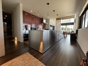 - 玄関ホールの正面にはプロ仕様のようなキッチンがあります