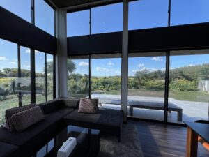 今回ご紹介する物件は、その「房総フラワーライン」から丘の方へわずか1kmほど入った場所にあり、別荘を求めている方であれば、誰もがきっと憧れを抱くであろう“素敵な”一棟となります。この物件、数ある魅力の中でも特筆すべきは、周囲に民家がなく、いわゆる『ポツンと一軒家』のように高いプライベート性に包まれたレアな立地ということ。近隣には畑が広がり、時おり農家のトラックが通り過ぎる程度。耳を澄ませば、海風と小鳥のさえずりが聞こえる、そんな穏やかな場所です。
