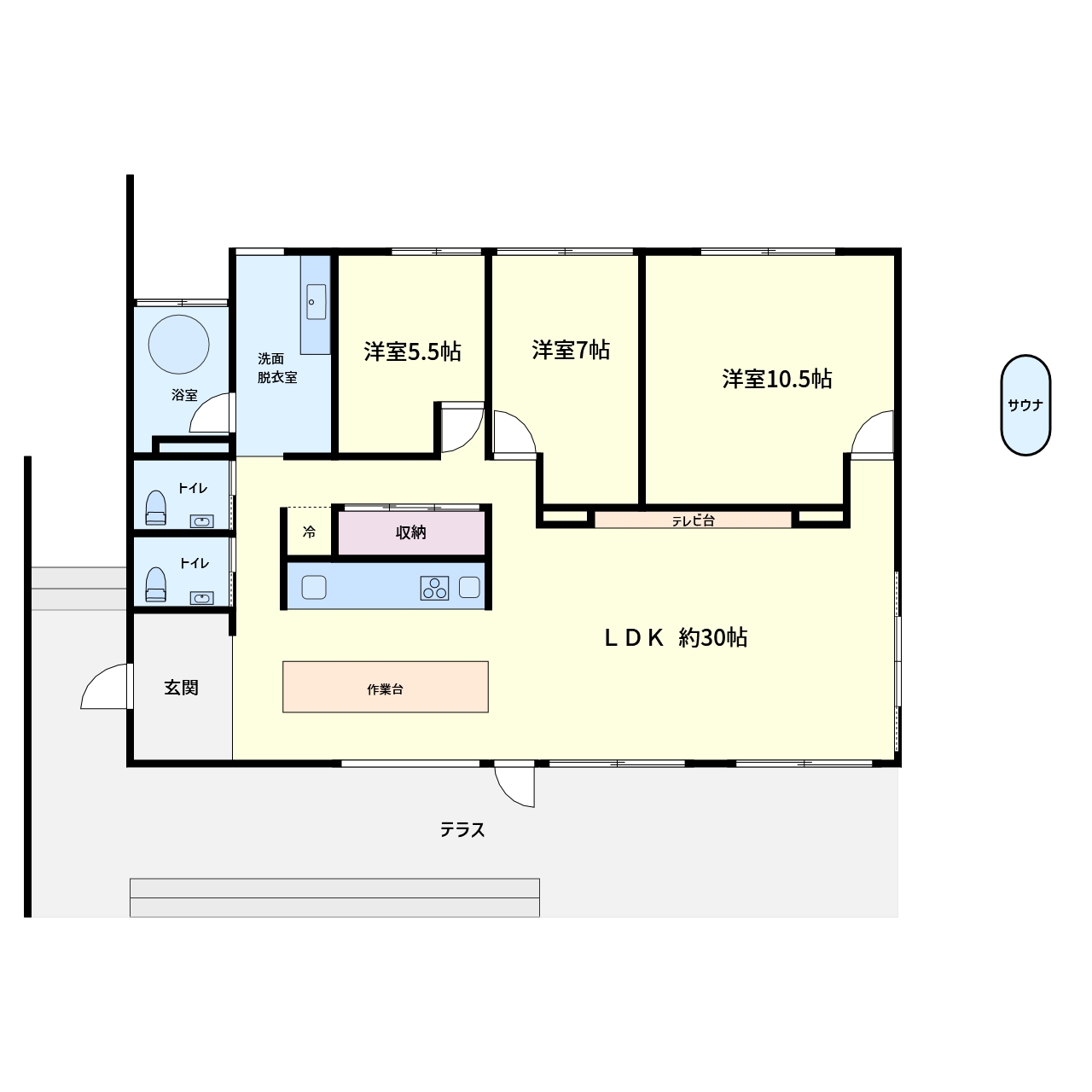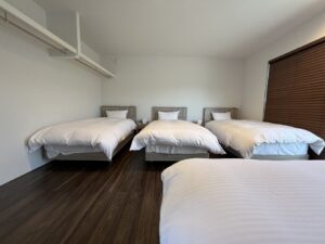 ほか、3つのベッドルームに加え、大きな浴室、男女別のトイレがあるのもうれしい。建物全体で感じられるのは、「リゾートで暮らす」といった設計思想。日常の延長でなく、“家族や仲間と愉しむための拠点”そんな思いが伝わってきます。