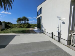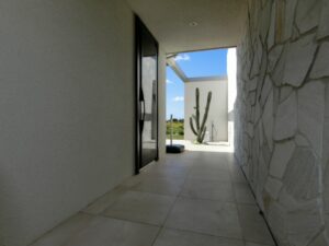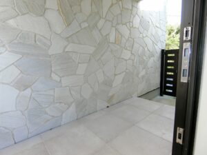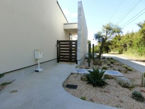 - 道路側から玄関へと向かうアプローチの様子から見ていきます