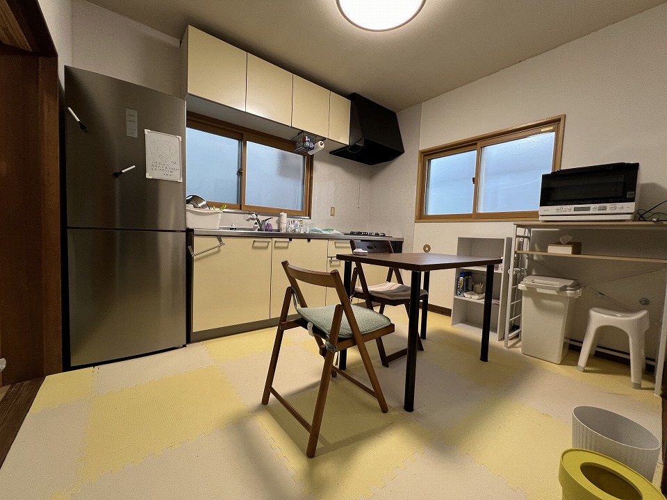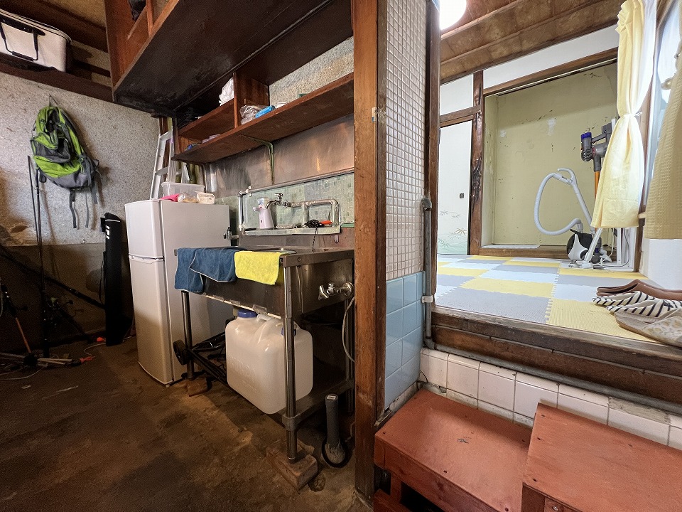 - 勝手口と倉庫を備えた約7帖のスペースです