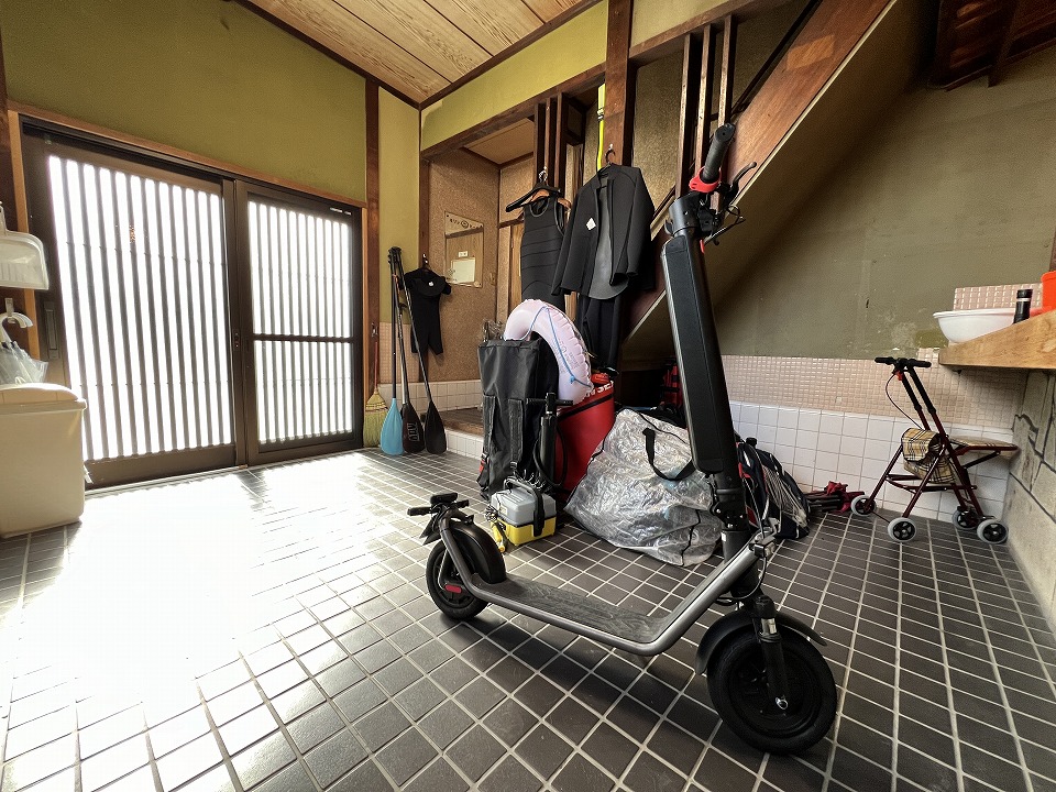 建物は、かつてお寿司屋さんとして利用していた店舗部分と、間取り8DKの居宅スペースからなる大きな佇まい。築年数はそれなりに経過しているが、居宅スペースにおいては手入れや補修などメンテナンスが随所に施されており、こだわりやわがままを言わなければ、十分快適に利用できる状態。一方、店舗側1、2階は手を入れたい状況であることは否めないが、建物全体をどのように使うかで、リフォームは皆さまのセンスとご予算にお任せです。さらに、店舗と居宅は1階、2階を行き来できるユニークな造りとなっているため、この個性的な動線を活かして、お店はもちろんアトリエや展示スペース、マリンレジャーの基地など、新たに“創る楽しみ”を味わっていただきたい。