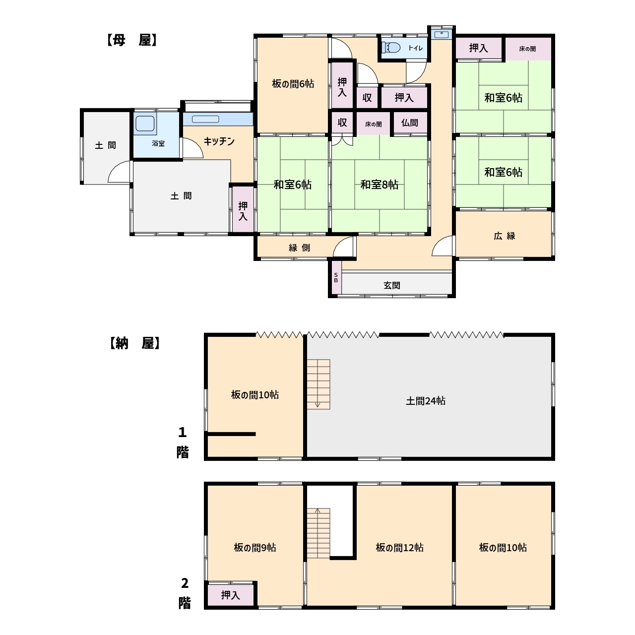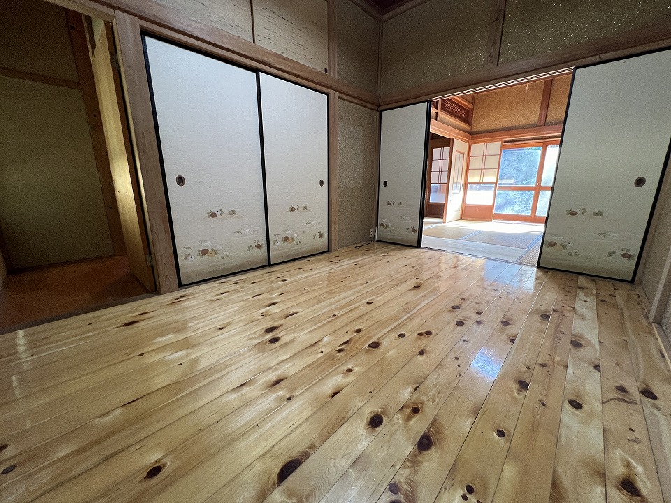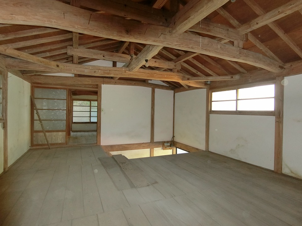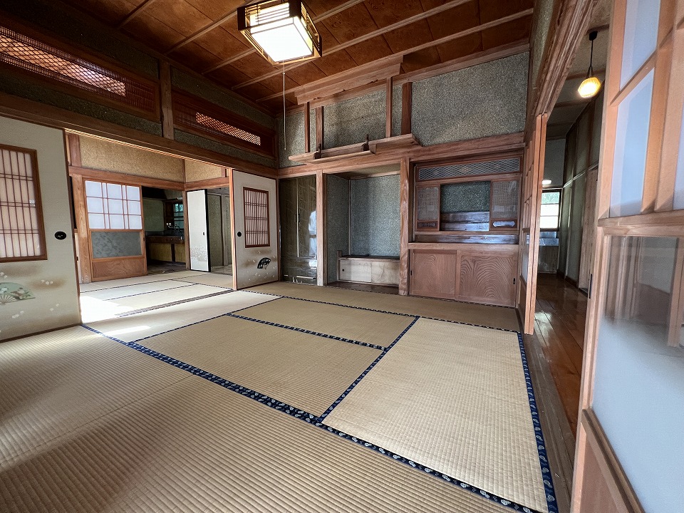 建物は、昭和45年に建てられた母屋と2階建の納屋が付いた、昔ながらのいわゆる農家民家。母屋についての築年経過は否めませんが、和の趣を感じさせるしっかりとした造りで、丁寧に手を加えることで、味わい深い住まいへと育てていく楽しみが広がりそうです。離れにある2階建の納屋は、かつて子供たちの部屋として利用していたようで、こちらも手の加え方しだいでは、ゲストハウスや趣味の基地など、多彩な用途で利用できる建物に生まれ変わりそうです。