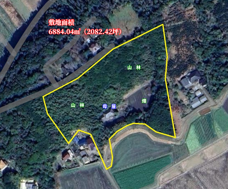 - 物件の全景です!奥に見える山の部分が本物件となります