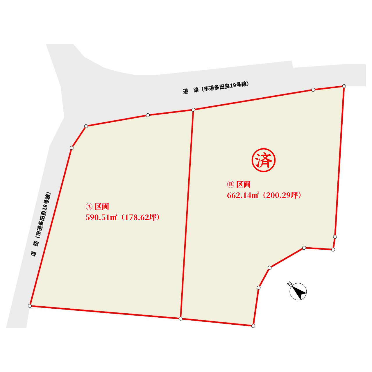 Ⓐ区画 590.51㎡(178.62坪) Ⓑ区画 662.14㎡(200.29坪)ご成約済