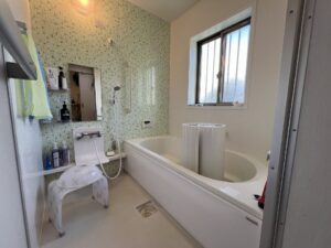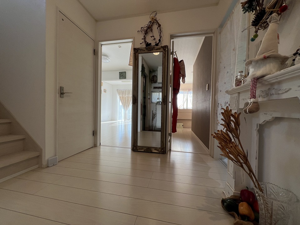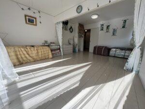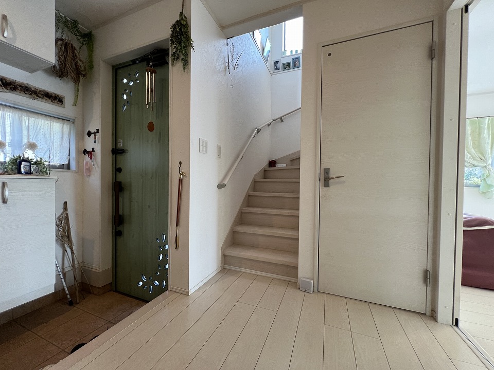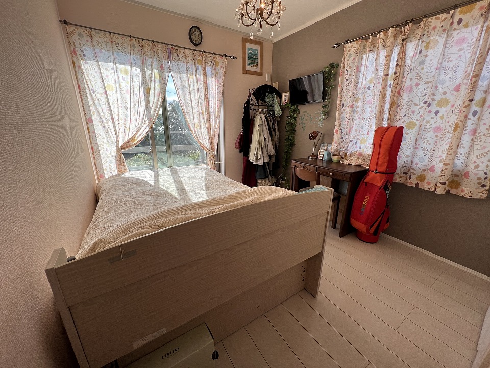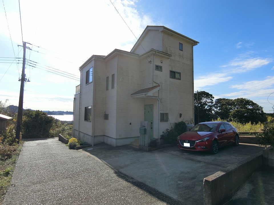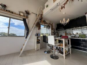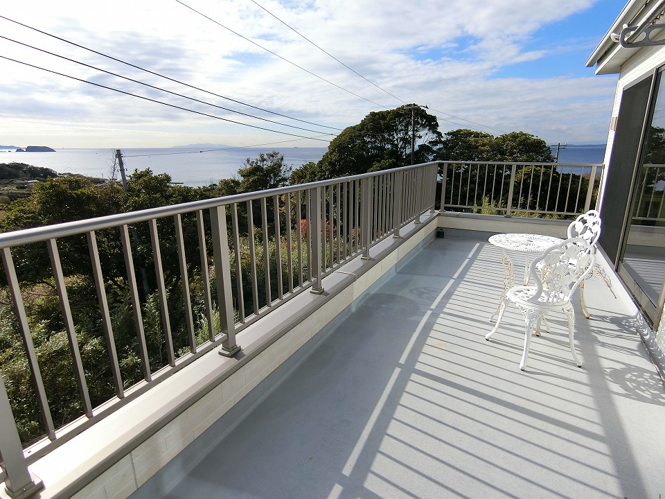 そんな景色を独占するかのように佇む建物は、平成29年5月に新築されたどこか愛らしさを感じさせる外観。オーナーさまのこだわりにより淡色でまとめられた室内は、1階に大地(緑)、2階に海(青)を、それぞれイメージしたカーテンなどが設えられており、フロアごとに異なる表情を楽しめる空間となっている。そして、この建物が持つ最大の「凄さ(魅力)」は、1階から2階LDKへ足を踏み入れた瞬間に目の前に現れる圧倒的な眺望。視界いっぱいに飛び込んでくる『海と緑』が織りなす景観と、言葉では言い尽くせないほどの開放感は、ここでしか味わえない特別なもの。計算された高台のロケーションが、この唯一無二の景色を日常の一部としてくれます。ぜひ現地にて、その魅力を体感していただきたいところです。