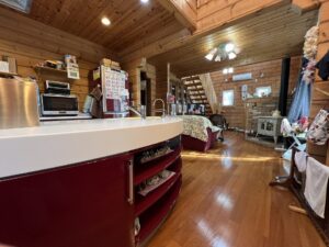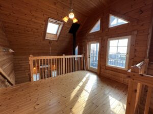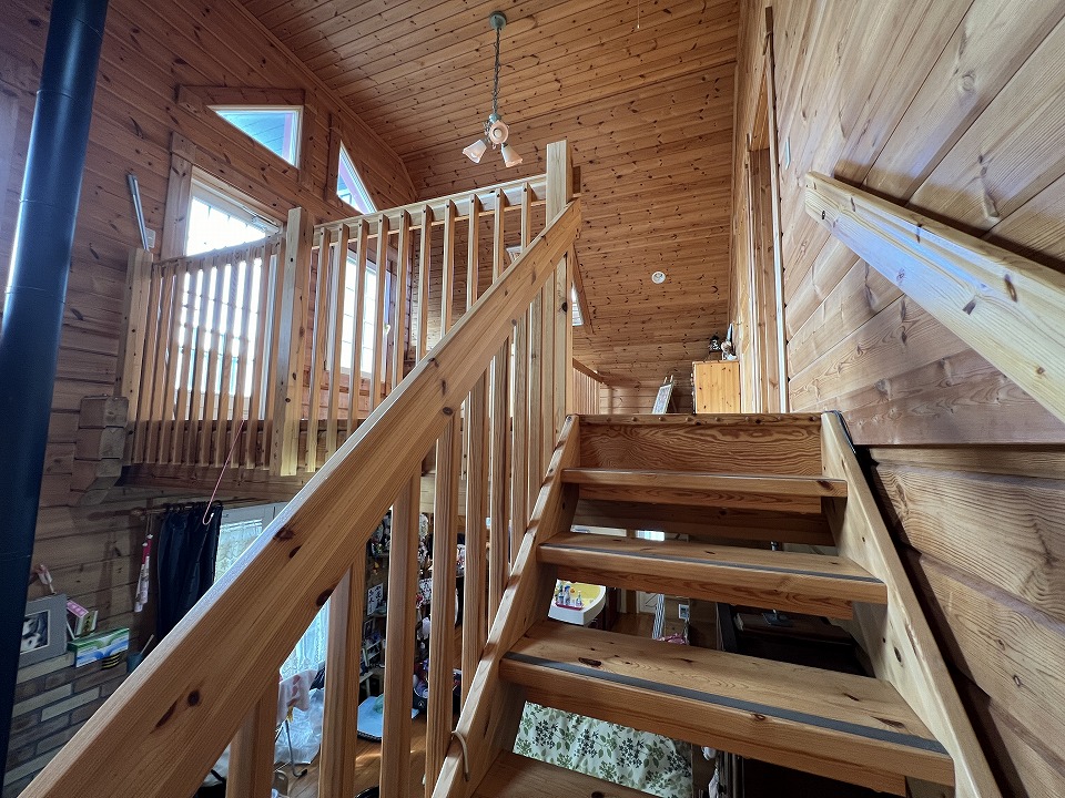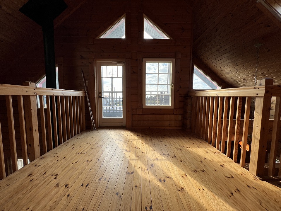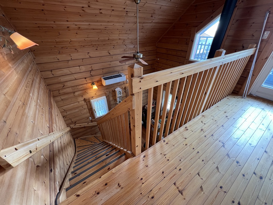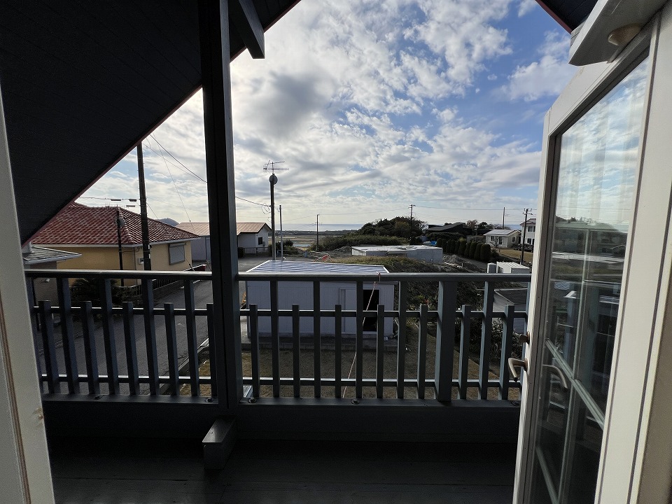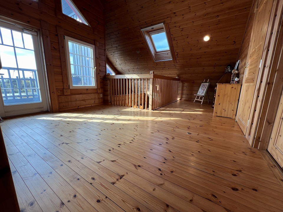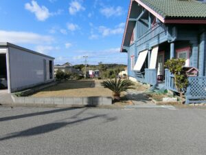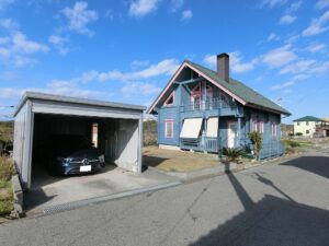 ホライゾンブルーに、かわいらしいピンクのアクセントが映える高台のログハウス。2階のサービスホールからは、現時点では太平洋のロケーションを贅沢に望むこともでき、時間帯によって表情を変える海の景色も楽しむことができます。また、敷地の一角にはガレージ車庫も設けられており、ほかの空きスペースでは家庭菜園やフラワーガーデニングなど、庭遊びも存分に楽しめてしまいます。フィンランド生まれのホンカのログ、いかがでしょう。少しでも心惹かれた方は、ぜひ一度現地でその空気感を体感してみてください。ご連絡お待ち申しております。