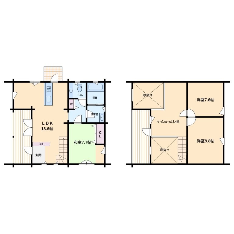 - 玄関入ると18.6帖の広いLDKが広がっています