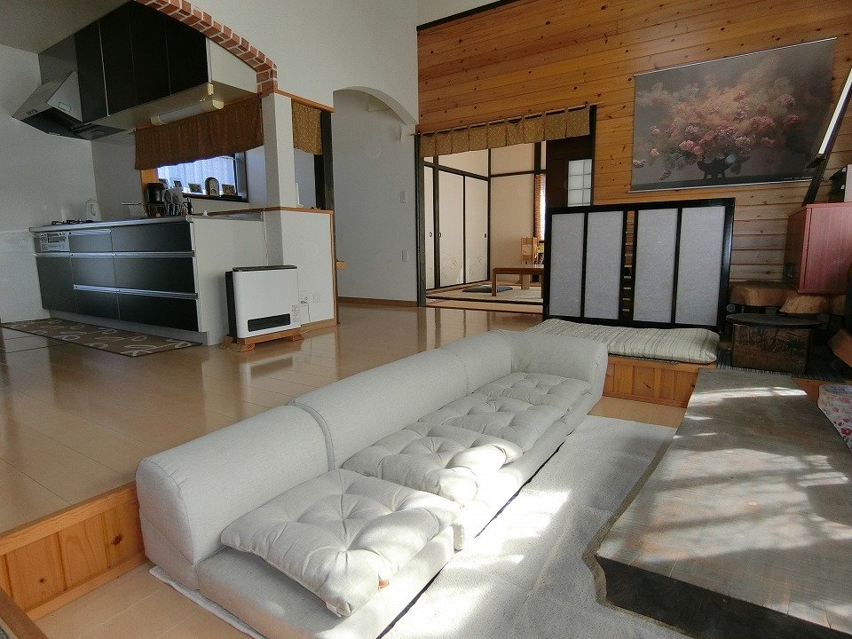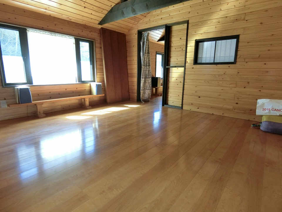 そうした流れの中で食品加工の作業場も必要となり、耕作用地として使っていた1区画分を無くして作業場兼ゲストハウスを平成25年3月に新築しました。しかし、今回はご年齢による作業縮小に伴い、利用しなくなったそのゲストハウスが販売の対象となりました。室内は、画像をご覧いただいたとおり、建具に古民具を取り入れたりロフト空間を設けたりなど、細部にまで遊び心が感じられる造り。しかも水回りについては、ほぼ未使用とのことで、ピカピカ良好な状態が保たれています。
