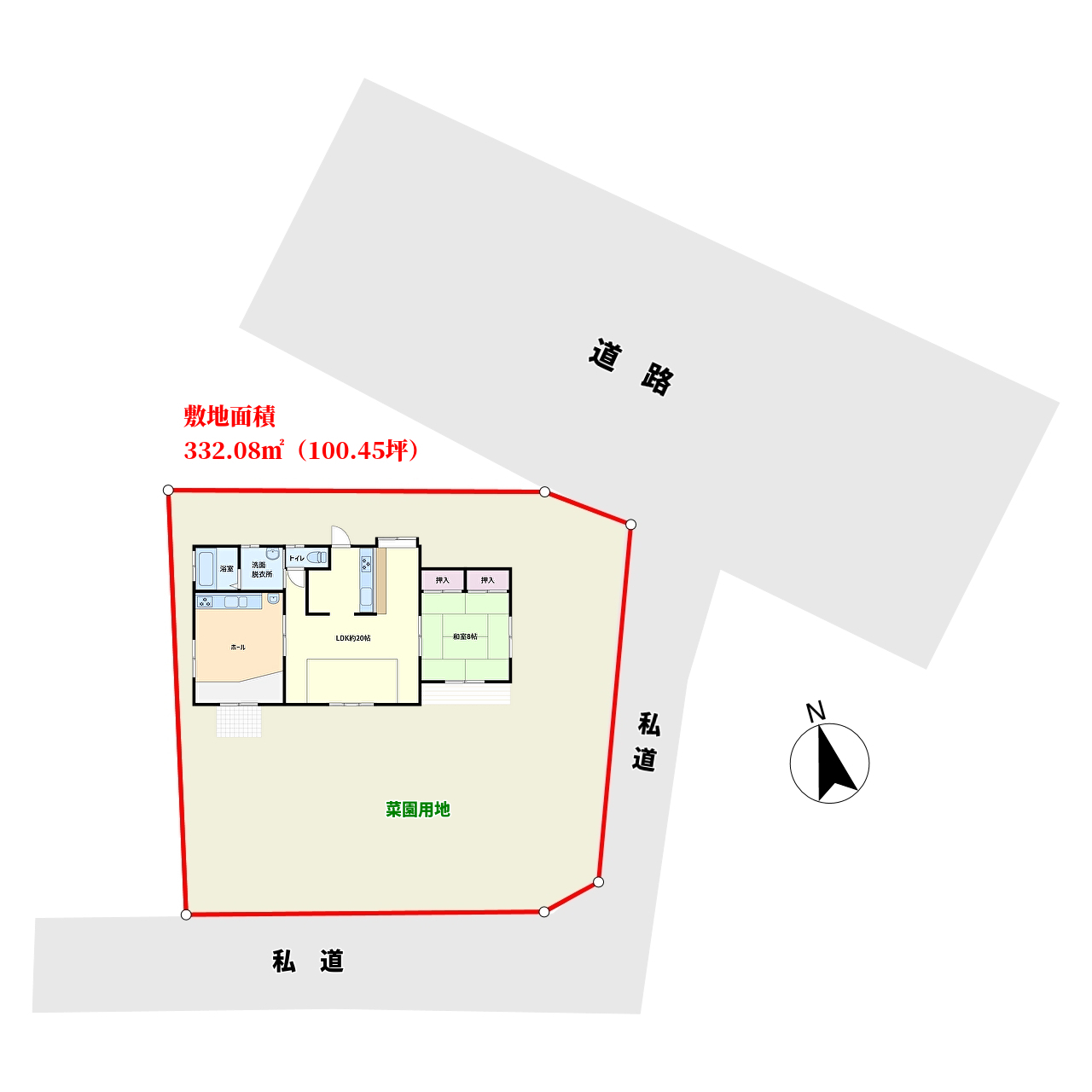東側:公道 南側:私道に接道