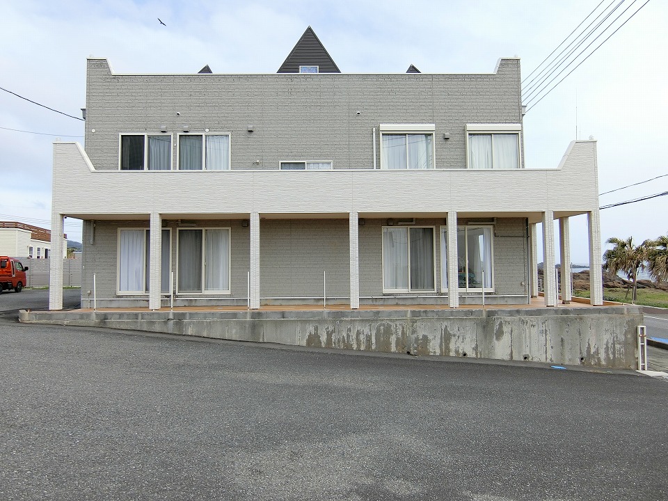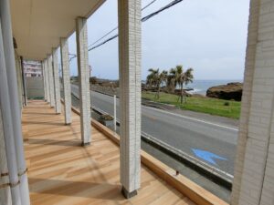 今回ご紹介する物件は、その海岸線の最前列、まさに海景色の特等席ともいえる位置に建つ大型建物。前面には海岸道路こそあるものの、視界を遮るものはなく開放感あふれる素晴らしい海の景観が広がります。道路を渡れば、白浜の海らしいダイナミックな岩礁帯が連なり、潮の満ち引きによって点在する潮だまりでは、磯遊びも楽しむこともでき、小さなお子様から大人まで、海と触れあうひとときを気軽に味わうことができる環境です。