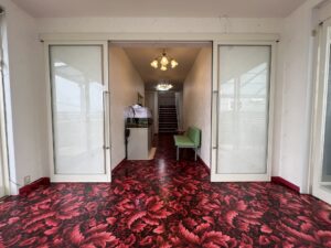 - 玄関廊下の開口は受付と使用され8帖ほどの広いスペース