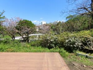 現況のような四季折々の草木や花々を愛でる時間。あるいは、家庭菜園や果樹、ハーブなどを育て楽しむ……。さらに、サウナやジャグジー、プールを設けてみるなど、一度、現況の庭をリセットして新たな庭づくりにチャレンジしてみるのも面白いかもしれません。多彩な楽しみ方が広がる、そんな自由度の高いロケーションです。