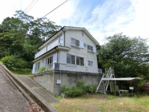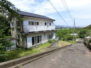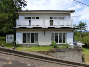さて、今回ご紹介する物件は、街並みの向こうに広がる太平洋、青く澄んだ空に山緑の稜線、そんな自然景観が醸しだすコントラストが非常に爽やかな高台の別荘となります。掲載画像は天気にも恵まれず上手く表現できないのが残念ですが、実際に肉眼で見るとその爽快感あるビューは期待以上のはず。水平線から昇る朝日も素晴らしく、別荘としてのロケーションや近隣環境共々合格点ではなかろうか。建物は2世帯仕様で玄関は2箇所となるが、1階のリビングは室内でつながっている不思議な間取り。各々の階段を上がり2階は反転する同間取りとなるが、バルコニーもつながっているといった変則型。差し支えなければ、そのままの利用していても何ら問題はないが、用途によっては間仕切りするなど上手く手直しを行い活用して欲しい。場面によっては片側は貸すといった選択も良いかもしれない。