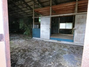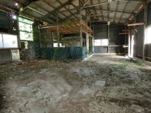 そんな癒しの環境のもと、197坪の敷地にはDIYチャレンジ仕様の母屋と軽量鉄骨造りの大きな倉庫2棟が建っている。母屋の状態は、空家の状態が長く築年相応の老朽化は否めないが、躯体はしっかりとしてそうなので何とか蘇らせてあげたいものである。全面的な改修は間違いなく必須だが、田舎暮らしをするうえで、ゆっくり時間を掛けDIYすることも楽しみたいという方であれば、それを前提に是非おすすめしたい。倉庫においても用途は様々ありそうだが、母屋同様に改修を進めながら趣味などの基地に使うのも悪くない。