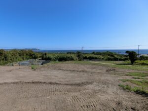 今回ご紹介する物件は、果てしなく広がる太平洋をパノラマで一望できる、実測987坪の真南向き雛壇地。圧倒的なスケール感を誇る希少なロケーションです。しかもこの土地、ただ広いというだけではなく、隣接に民家がないというプライベート感を兼ね備えている点も大きなセールスポイント。そのため、誰にも遠慮することなく自分らしいライフスタイルを叶えてくれることは間違いありません。気兼ねなく音楽を楽しんだり、仲間とのBBQ、ほかにも音が気になる木工といった趣味の拠点としても存分に活用できそうであります。もちろん、海が一番よく見える絶景の場所に家を構えてしまえば、静かな環境の中で海を感じながら暮らす……そんな夢のようなリゾートライフも十分に具現化します。