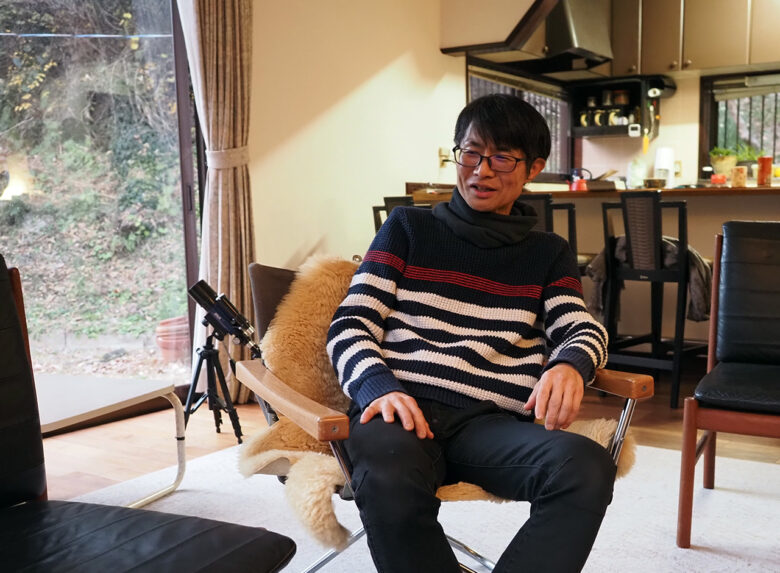 【初めて持参した望遠鏡のセッティングをする丈君。星空観察ができるのもここならでは。】